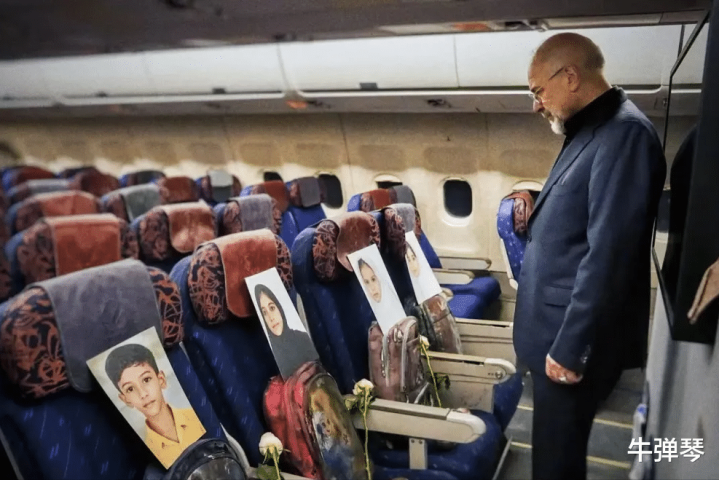 这应该就是在前往谈判的飞机上,一身正装的卡利巴夫,默默看着第一排座位。